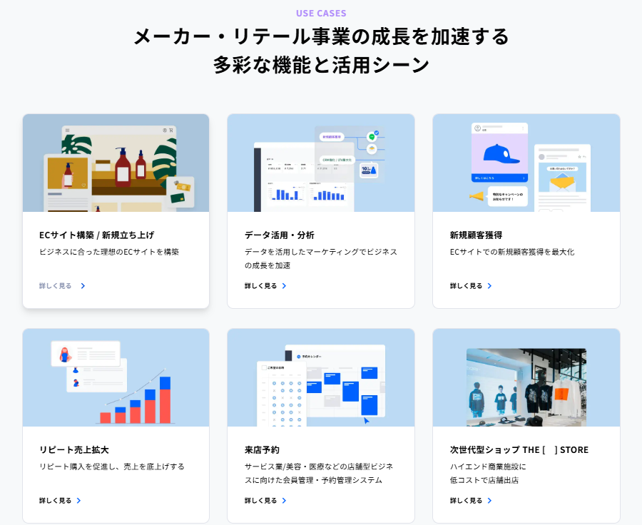 株式会社SUPER STUDIOが提供するクラウド型ECプラットフォーム。D2C/サブスクリプション型ビジネスに強く、購買促進・分析・顧客管理・マーケティング自動化など、EC運営に必要な機能をワンストップで備えています。セット販売やアップセル/クロスセル、離脱防止ポップアップなどで顧客体験を高め、オペレーションの自動化や広告管理機能も充実。さらに、頻繁なシステムアップデート・外部サービスとの連携性の高さも強み。([turn0search2]