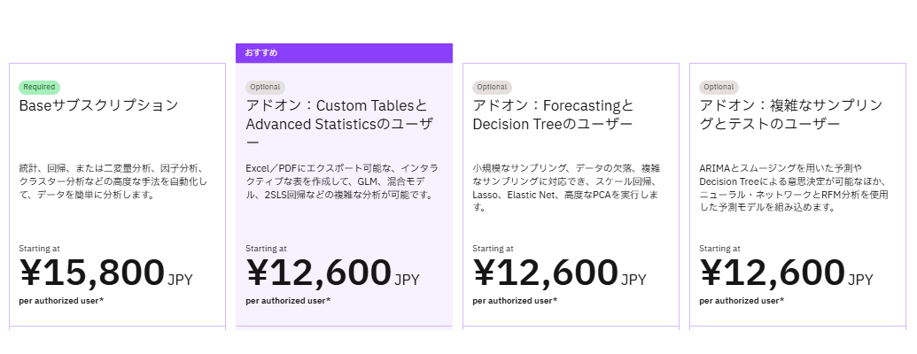IBM SPSS Statisticsは、全世界で28万人以上に利用されている高度な統計分析ツールです。ブートストラップ法や回帰モデル、デシジョンツリーなどの機能を簡単な操作で利用可能。市場調査や顧客分析、政策立案、ヘルスケアなど幅広い分野で活用され、少ないサンプルからも精度の高い予測を導き出します。直感的なインターフェースで初心者からエキスパートまで利用でき、データ駆動型の実用的な洞察を迅速に提供します。