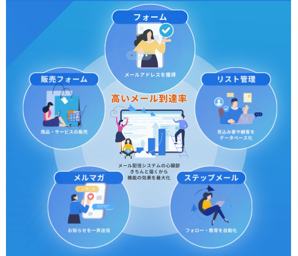 フォームでリストを集め、ステップメールで育成し、メルマガで継続的につながる仕組みを構築。使いこなせない多機能ではなく、必要な機能に絞ることで効率的に成果を出すことが可能です