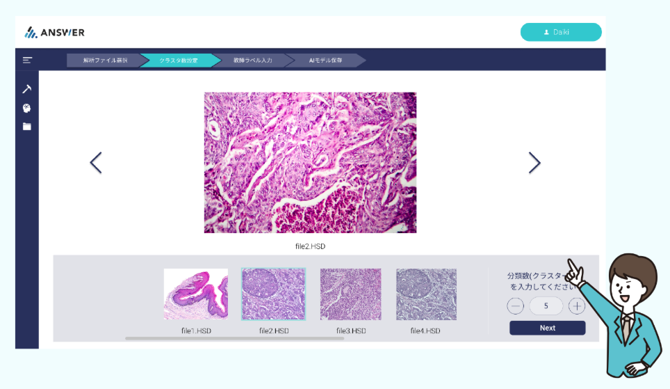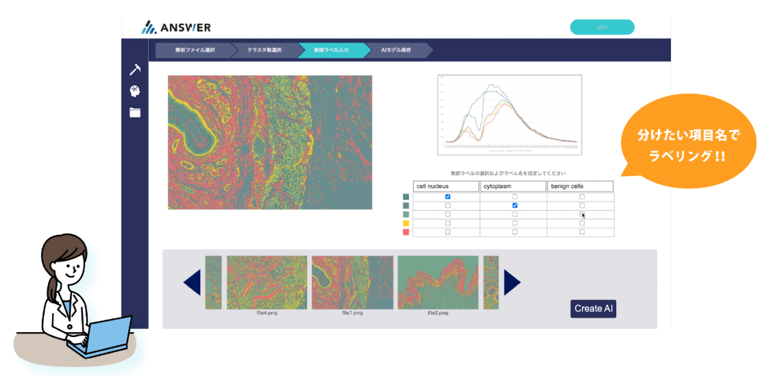 ANSWERは、これまで解析に専門知識と長い研究期間を必要としたハイパースペクトルデータを、クラウド上で手軽に処理できる環境を提供します。データアップロードからAIモデルの構築・評価・運用までを一気通貫で支援し、UIもシンプルに抑えられているため、解析エンジニアでなくても活用が可能です。さらに、解析アルゴリズムを他社と共有・有償提供できる設計により、活用領域の拡大とコスト低減を同時に実現します。