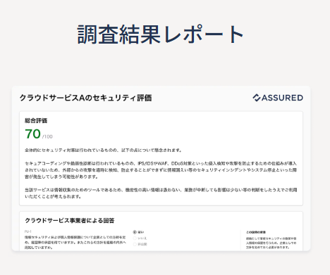 Assuredは、SaaSやASPといったクラウドサービスのセキュリティを評価するためのプラットフォームです。直接的な評価を通じて、より安全なサービス利用を支援します。