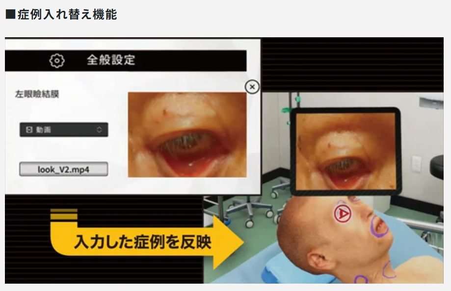 症例入れ替え機能により、さまざまな状況に対応したトレーニングが可能です。診察ログ機能では、行った手順の記録を残し、振り返りができるため、学習効果が高まります。