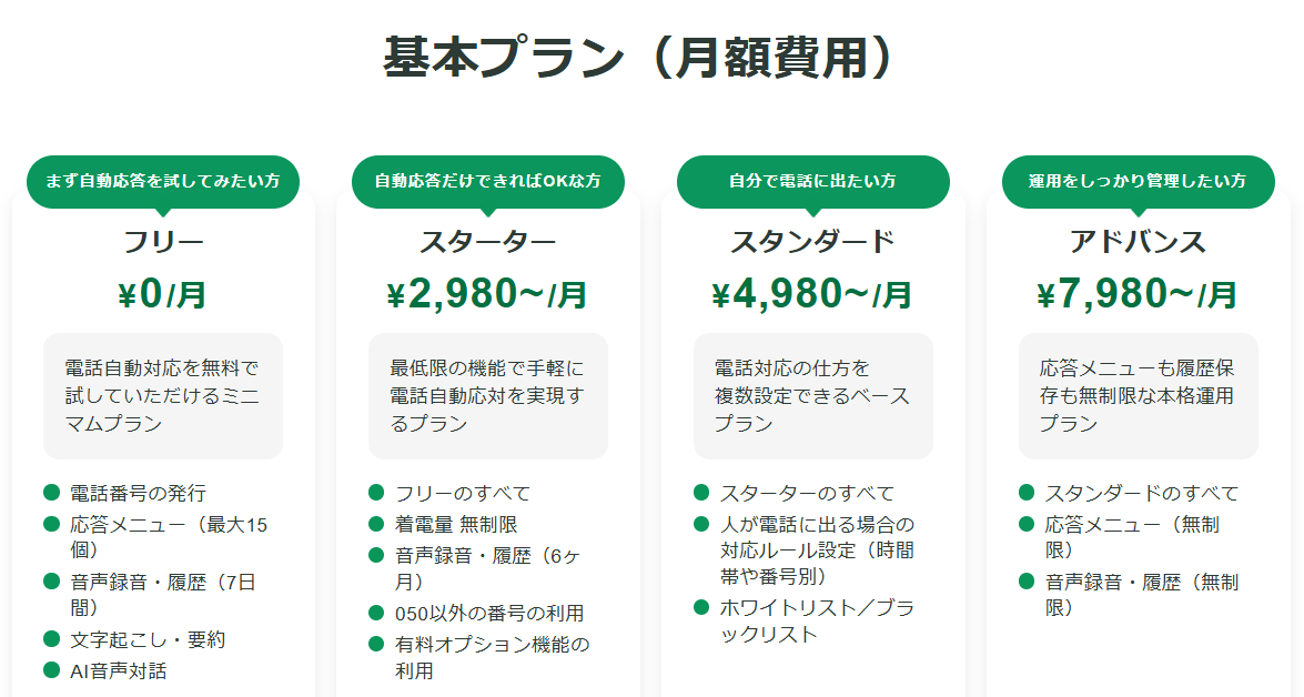 簡単な電話自動応答設定