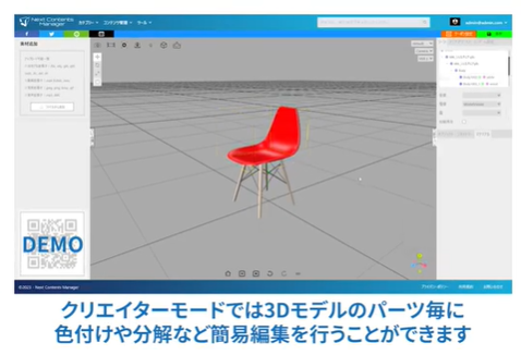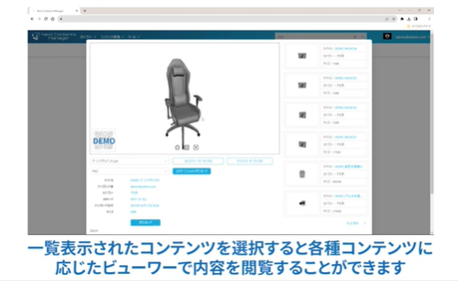 Next Contents Managerは3DCG、動画、画像、音声などの多様なコンテンツをWebブラウザベースで管理し、簡易編集することが可能です。従来のAR化サービスではコンテンツ数や容量によって追加料金が発生することがありましたが、本サービスではその制約がなく、柔軟な運用が可能です。また、外出先からも利用できるため、オフィス外での活用も容易です。