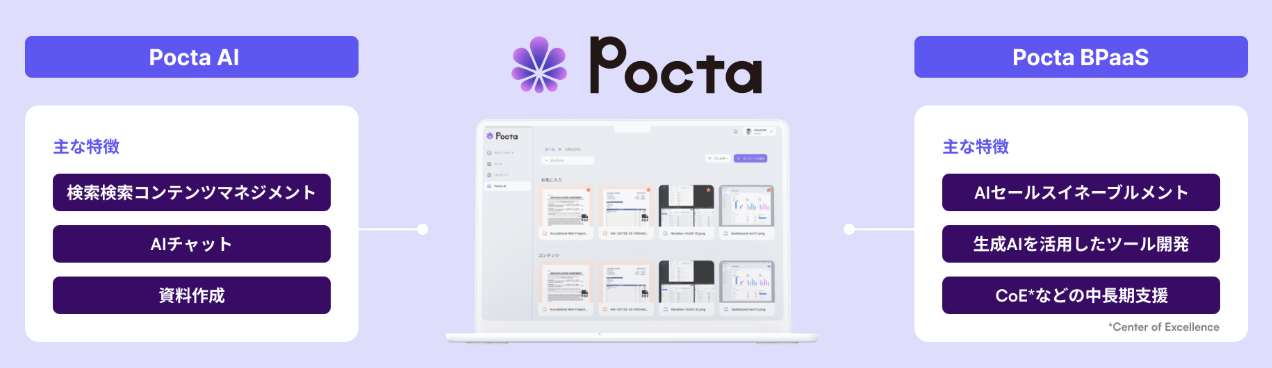 「Pocta」はAIを活用し、BtoB営業活動における情報の検索や資料の共有を効率化します。これにより、営業担当者は必要な情報に迅速にアクセスでき、顧客への提案をよりスムーズに行うことができます。