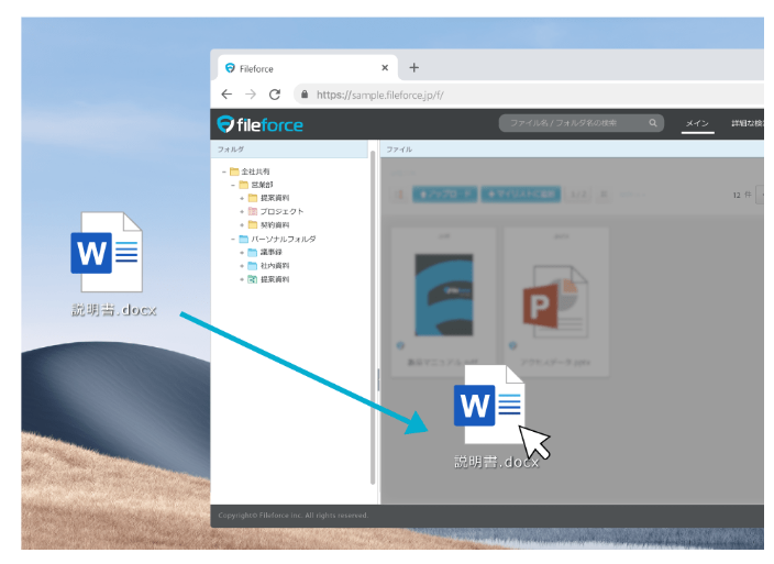 Fileforceは、法人向けの国産クラウドストレージです。エクスプローラー/ドライブアプリから社内ファイルサーバーのように高速操作でき、Webからも保存・プレビュー・検索が可能。共有リンクで大容量ファイルを安全に社外共有でき、PPAP対策にも有効です。厳格な権限管理、ユーザー/管理者ログ、ランサムウェア対策、IntelliSearch™(AI検索)、電帳法対応SmartFolder、ワークフローTaskFlow™など運用機能が充実。ユーザー数無制限プランを用意し、拠点/部署横断の統合とコスト最適化を両立します。