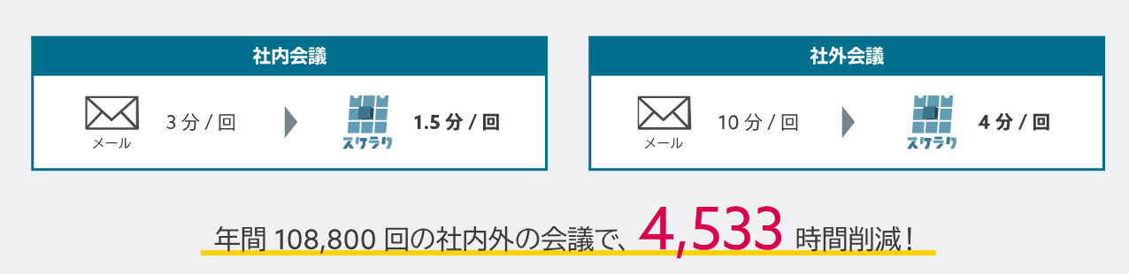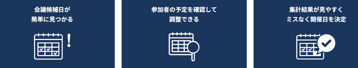 独自の空き時間レコメンド機能により、候補日時を自動的に提案。ユーザーは手間をかけずに会議の調整が行えるため、業務効率が向上します。
