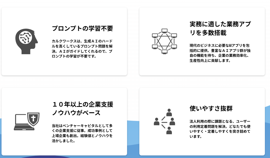 カルクワークスは、特に業務の効率化に特化したクラウド型ソフトウェアです。直感的なユーザーインターフェースと強力なデータ分析機能を備えており、チーム全体の生産性を向上させます。タスク管理、プロジェクトの可視化、リアルタイムの進捗把握が可能で、業務のスピードアップを実現します。また、スマートフォンやタブレットからもアクセスできるため、場所を問わず作業を行うことができます。