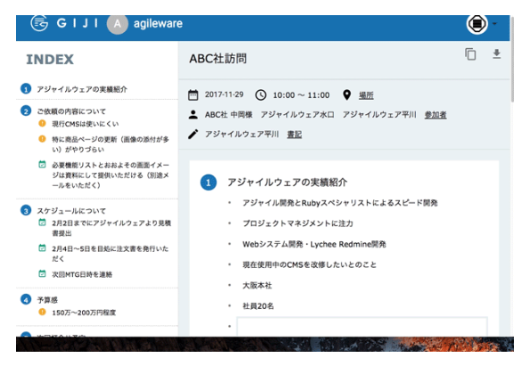 会議が終わった後、GIJIは自動的に議事録を整理し、必要な情報を簡単に検索・閲覧できます。議事録はチーム全体でアクセス可能で、重要な決定事項やアクションアイテムをすぐに引き出すことができ、プロジェクトの進行をスムーズにします。これにより、時間を有効活用し、情報管理の効率を高めます。