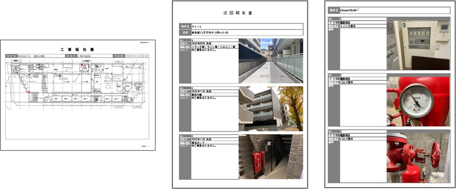 ・点検、工事などの目的に応じて複数のテンプレートから報告書を選択できます。
