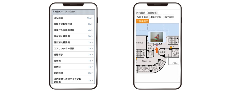 ・図面上に点検した設備箇所や不適箇所が記録に残せます。