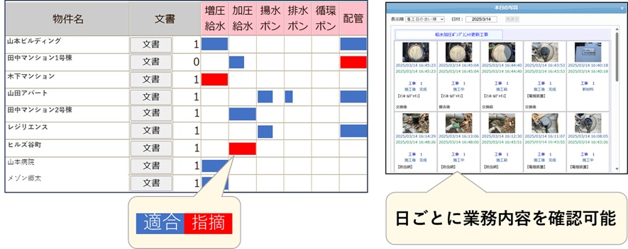 ・全現場の点検、清掃、工事の進捗状況が分かります。