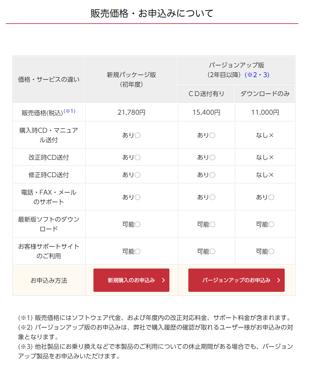 新規パッケージ版:21,780円、バージョンアップ版:15,400円、ダウンロード版:11,000円