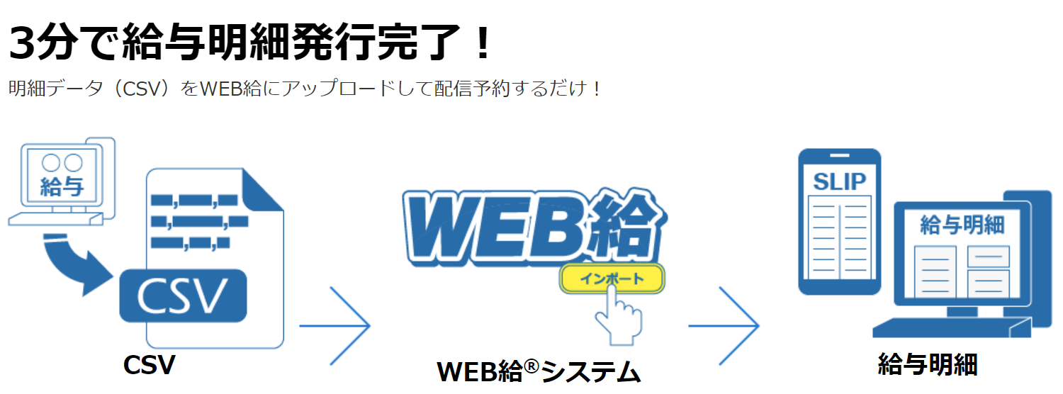 WEB給は給与明細の電子化配信サービス。給与明細・賞与明細・源泉徴収のPDFファイルをメールに添付して自動配信。明細公開時にはお知らせメールを配信。給与データをCSV出力できるすべての給与計算ソフトの明細書を電子化できる。