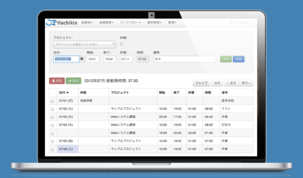 Hachikinは、中小企業向けの勤怠管理ツールとして、シンプルな操作性を持ちつつ、勤怠管理・経費精算・ワークフローなどの機能を一つにまとめたサービスです。クラウドベースでの提供なので、場所を選ばず利用可能。