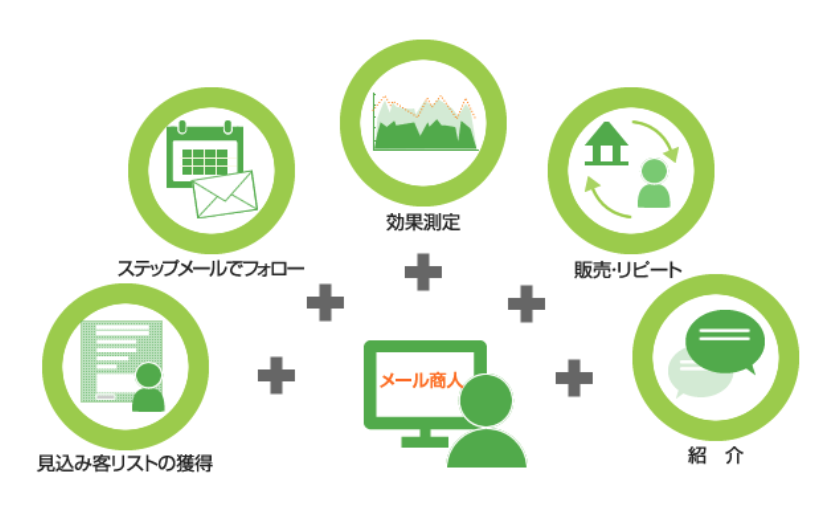 メール商人は、メールマーケティングに必要な機能をオールインワンしたメール配信システム。一括予約配信、セグメントメール、HTMLメール、パーソナライズメール、メール配信後の効果測定、CRM機能、お誕生日メールなど、多岐にわたる機能を提供。