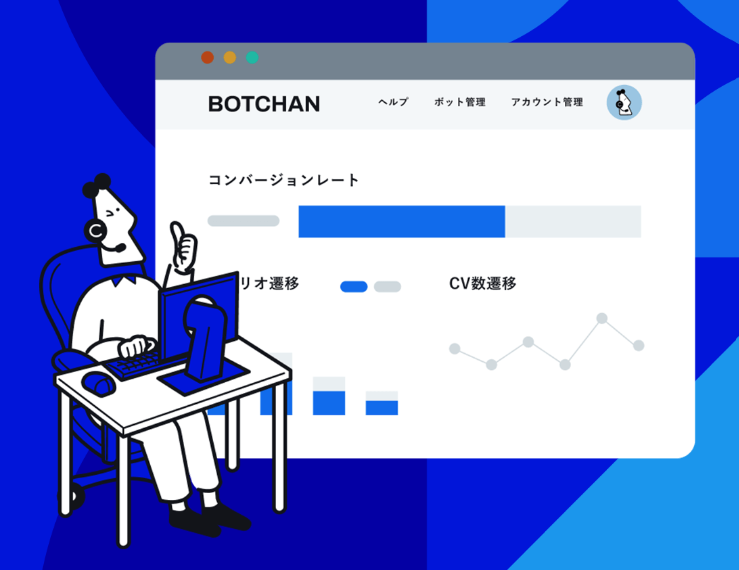 BOTCHAN EFOは、チャット型のUIを採用し、一問一答形式のコミュニケーションを実現。従来のフォームに比べてユーザーのストレスを軽減し、CVRを向上させることが可能。項目ごとの離脱率も分析でき、効率的な数値改善が行える。