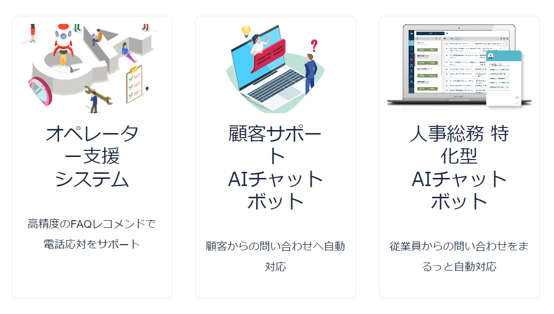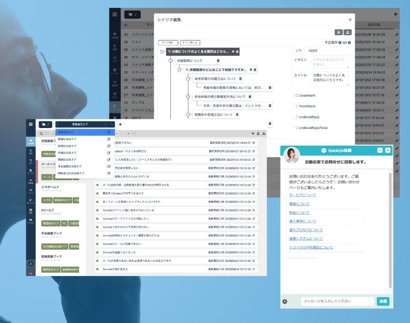 QuickQAは、社員や顧客からの問い合わせをAIチャットボットを用いて自動対応するシステム。オペレーター支援や顧客サポート、人事総務領域での問い合わせ対応など、多岐にわたる用途で活用可能。