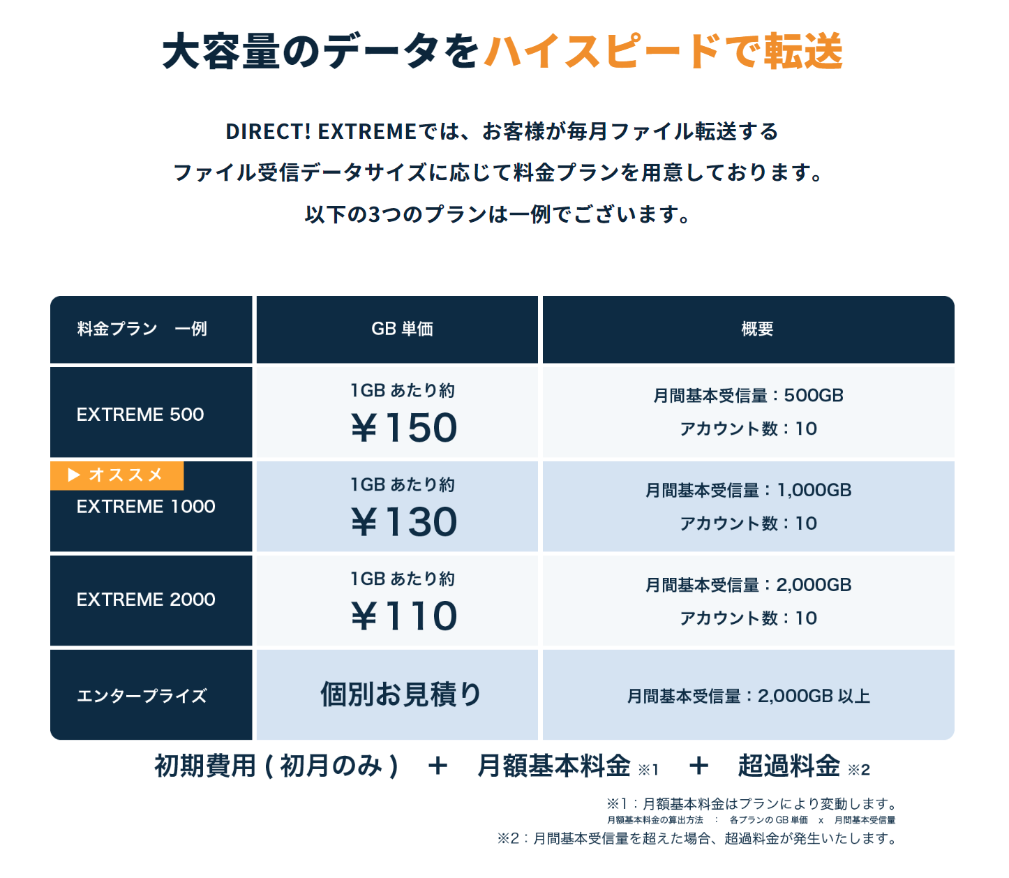 DIRECT! EXTREMEの高速転送は独自のデータ転送高速化テクノロジーにより実現。10時間かかっていた送信時間を10分程度に短縮。100GB以上のデータも簡単に送信可能。