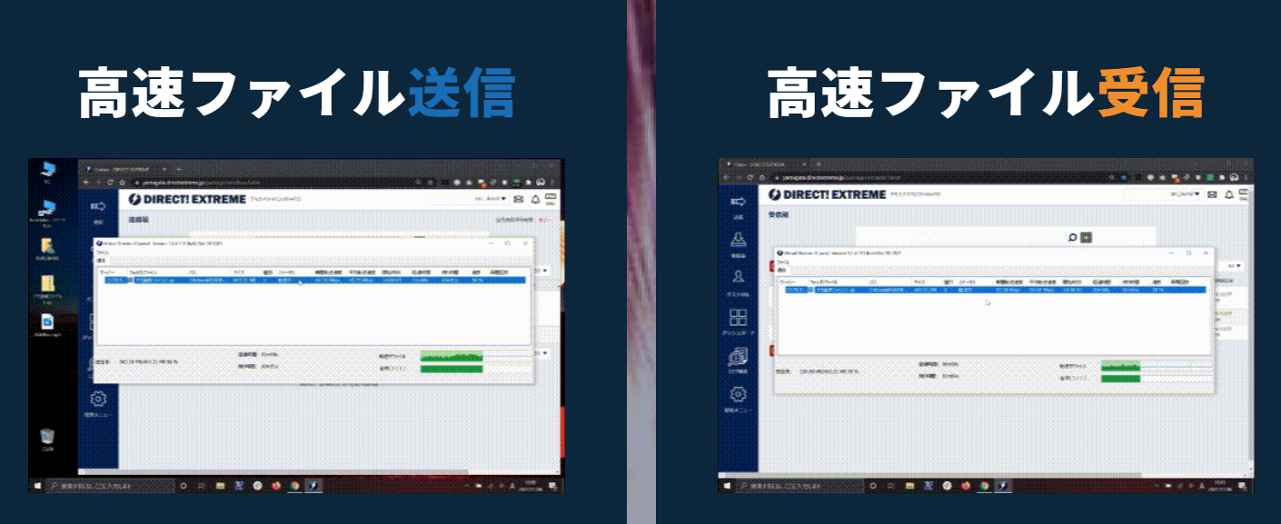 DIRECT! EXTREMEは、独自技術を活用して、海外や遠距離の低品質回線でも遅延を抑え、スピーディーな転送を実現。大容量のデータ転送がゲーム感覚で簡単に行える。