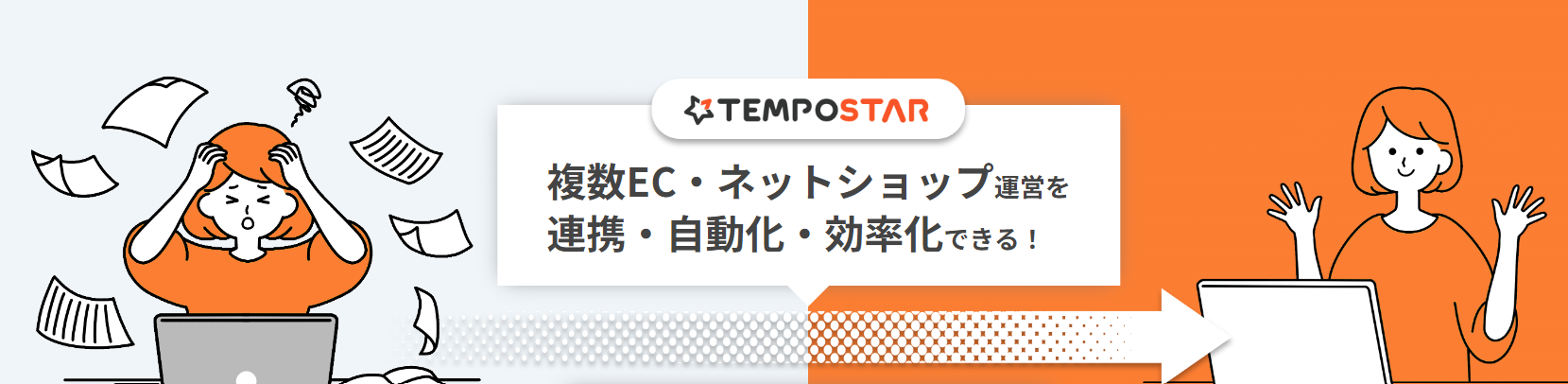 TEMPOSTARは、複数のネットショップを一元管理できるシステム。運用に合わせた柔軟なシステムカスタマイズが可能で、安定したサービス提供とトータルサポートを実現。商品情報・画像の一括・予約反映機能や、注文・受注情報の自動仕分け機能など、EC運営の効率を高める特徴的な機能が満載。