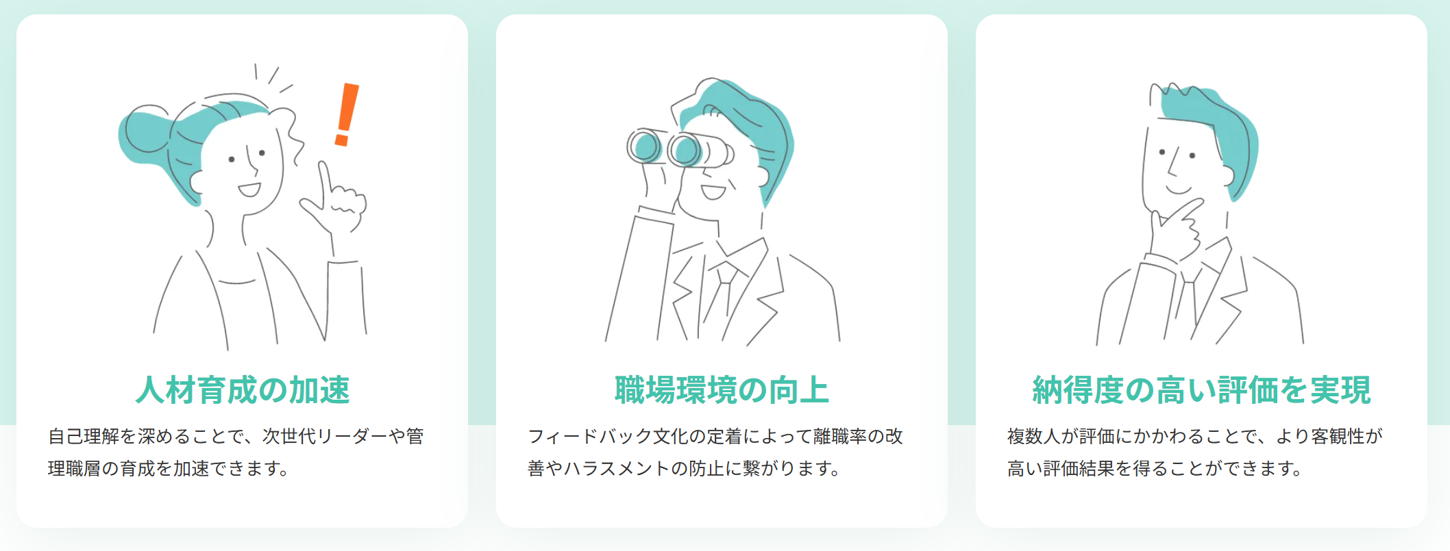従業員の能力やパフォーマンスを多角的に評価し、フィードバックを受け取ることができる。