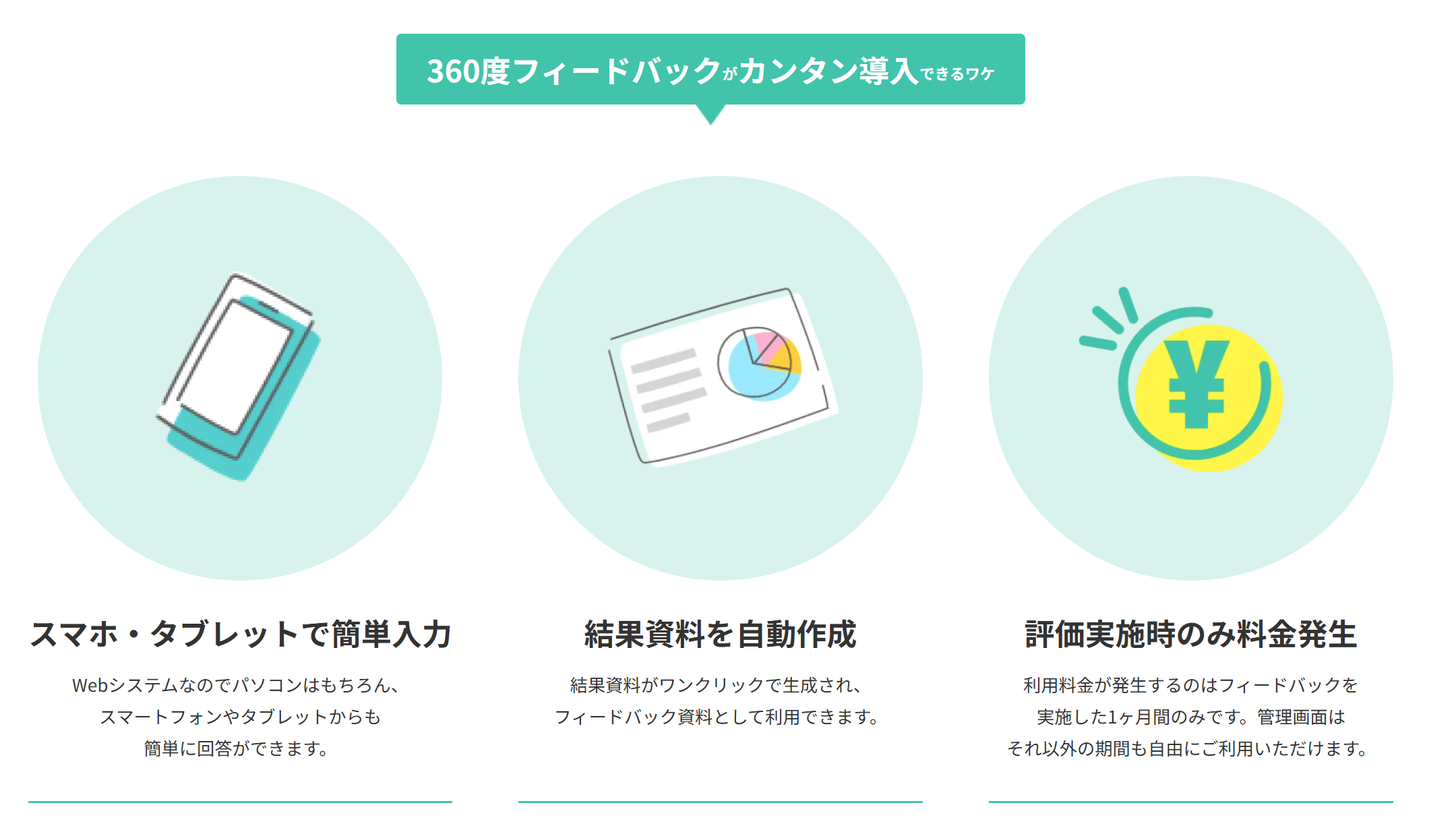360(さんろくまる)は、Web上で簡単に360度フィードバックを実施できるサービス。従業員のパフォーマンスや能力を多角的に評価し、フィードバックを受け取ることができます。