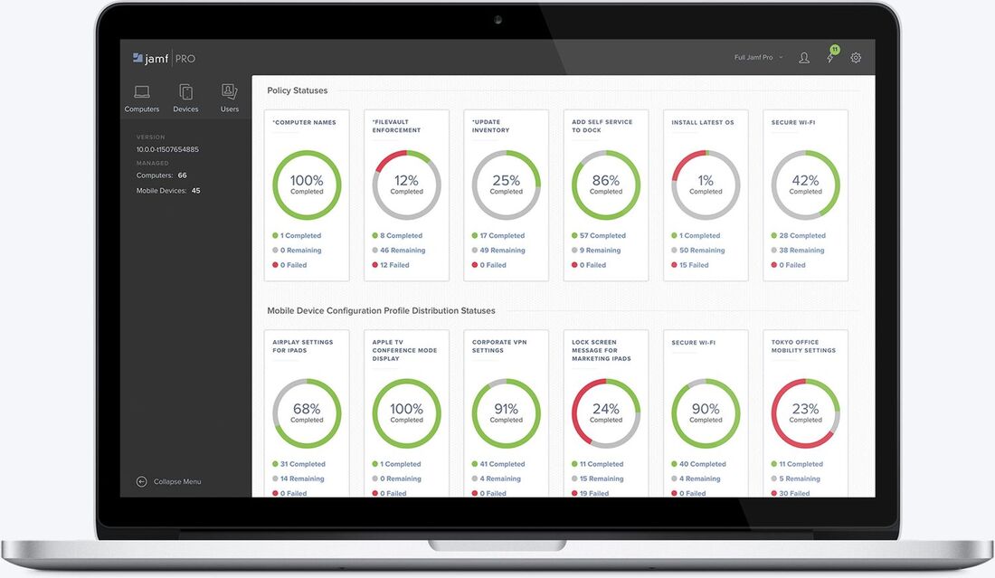 Jamf Proは、企業や学校でのAppleデバイスの利用をサポートするMDM(モバイルデバイスマネジメント)ツールです。デバイス管理業務を自動化し、エンドユーザーの生産性と創造性を保ちながら、IT管理者の負担を軽減します。