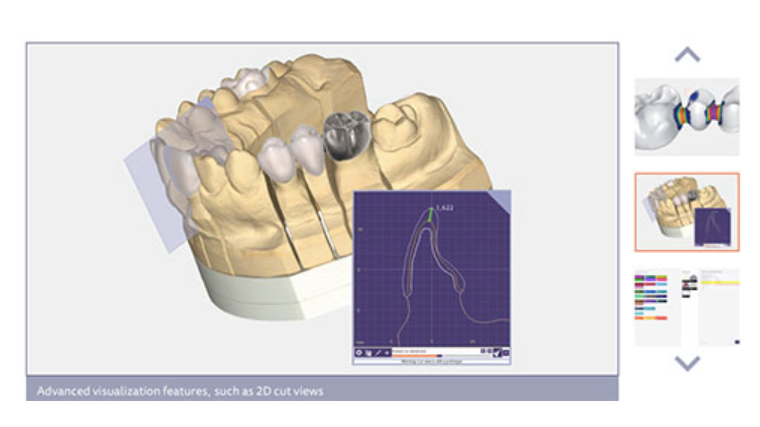 exocad ChairsideCADは歯科医師のための診断ソフトウェアで、歯科治療のデジタル化を支援する薬事承認された治療目的のソフトウェアツールです。オープンタイプのソフトウェアであり、どのような口腔内スキャナとも連動が可能で、歯科技工士向けのexocadデザインソフトとも連動しています。これにより、医師と技工士の連携が容易となり、即日補綴治療に最も有効なツールとなります。