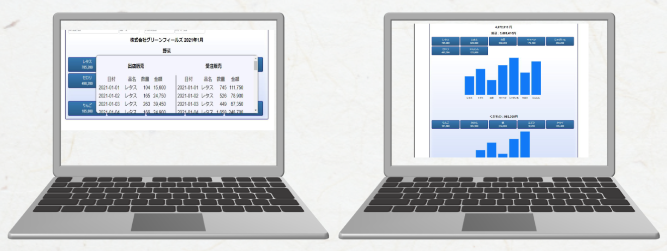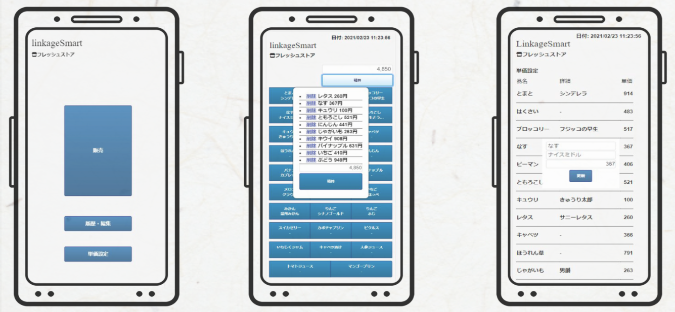 商品管理、顧客管理、注文管理、出先での販売、社内販売管理、各種帳票類の発行などができる。