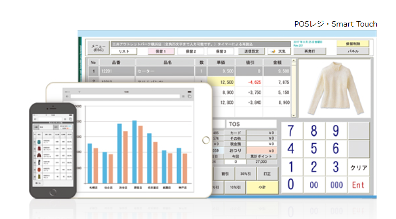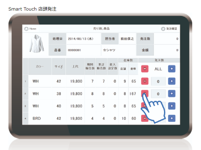 アパレル製造小売業、アパレル小売店に必要な計画発注から入出庫、売上確認・分析、在庫・棚卸、調整といったSHOP一連の情報を管理しMD計画の実現を支援します。本部では、店頭の売上・在庫情報をリアルタイムで把握でき、素早く次の行動を起こすことが可能です。