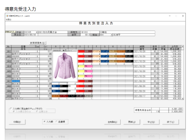 得意先別受注入力や品番別受注配分入力が可能で、受注伝票ナンバー入力・納期指定・特値にも対応。製造発注数を超えた受注数は売止の警告が表示され、受注額の向上に貢献します。